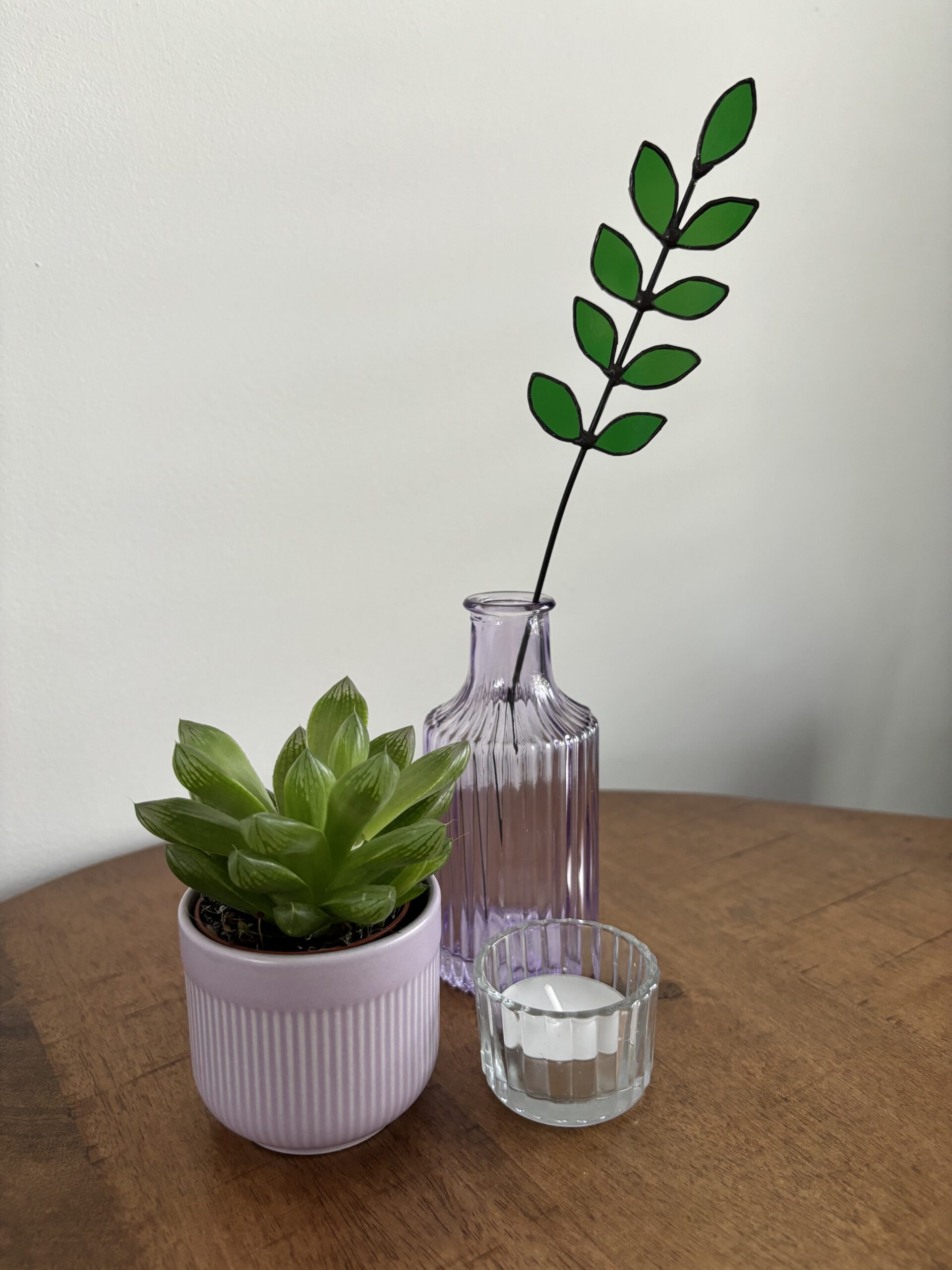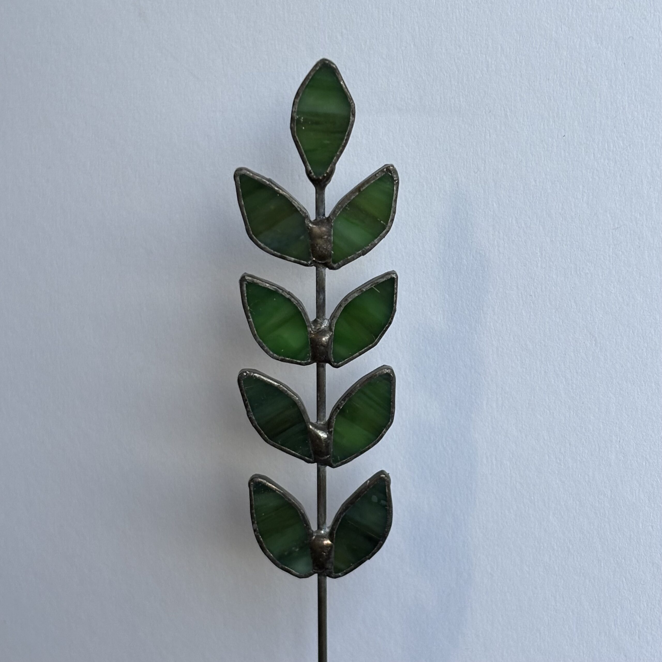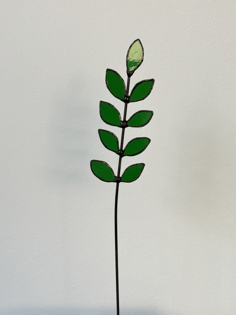 Deze Tiffany tak met negen bladeren heeft een speelse charme en brengt een natuurlijke sfeer in elke ruimte. Het evenwichtige aantal bladeren zorgt voor een stijlvolle uitstraling. Perfect voor elk interieur, leuk in een vaasje of als onderdeel van een boeket.