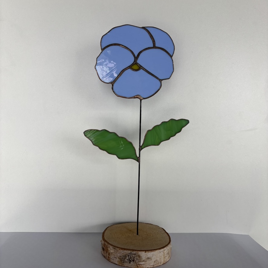 De zachte vormen van deze bloem komen mooi tot hun recht in het opaalachtige Tiffany glas. De kleuren lopen subtiel in elkaar over, wat elke bloem een eigen karakter geeft. Omdat het glas niet doorzichtig is, oogt het geheel rustig en warm.