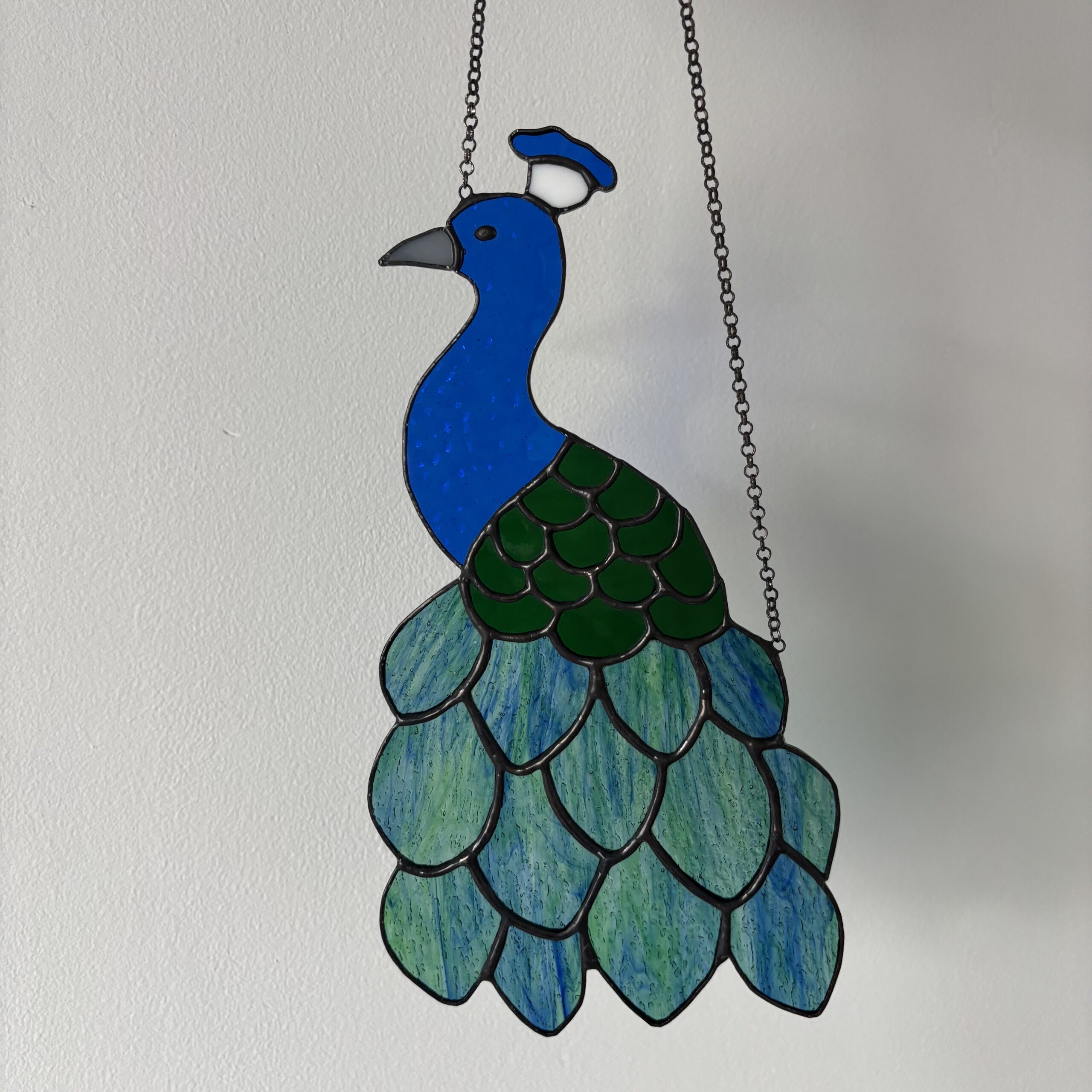 Voeg een vleugje luxe en mystiek toe aan je interieur met deze handgemaakte Tiffany hanger van een pauw. Dit elegante glaskunstwerk is met veel oog voor detail ontworpen en wordt vervaardigd volgens de traditionele Tiffany-techniek. Voor dit ontwerp wordt gebruikgemaakt van doorzichtig glas, waardoor het licht prachtig door de kleuren heen valt en een schitterend, levendig kleurenspel ontstaat – perfect voor bij het raam of op een lichte plek in huis.